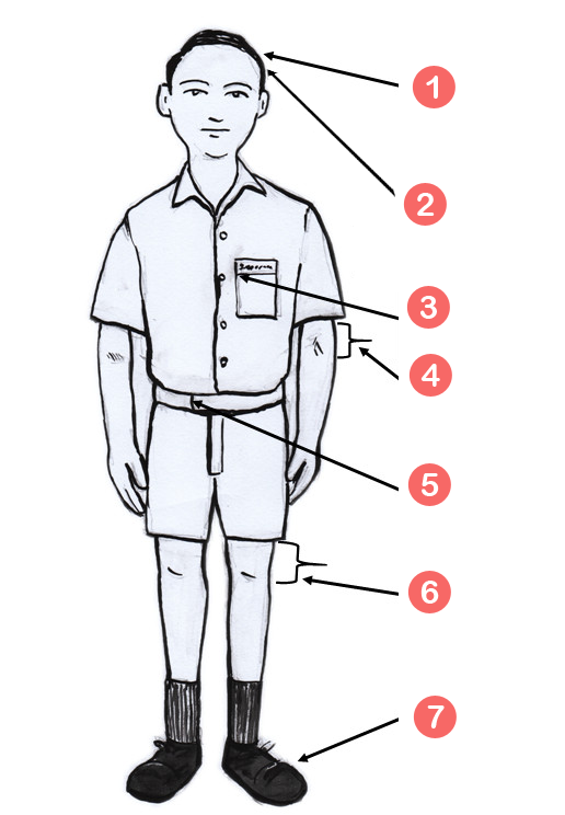- පාසල් ලාංඡනය සාක්කුවේ වම් කෙළවර සම්බන්ධ කර මසා තිබිය යුතුය.